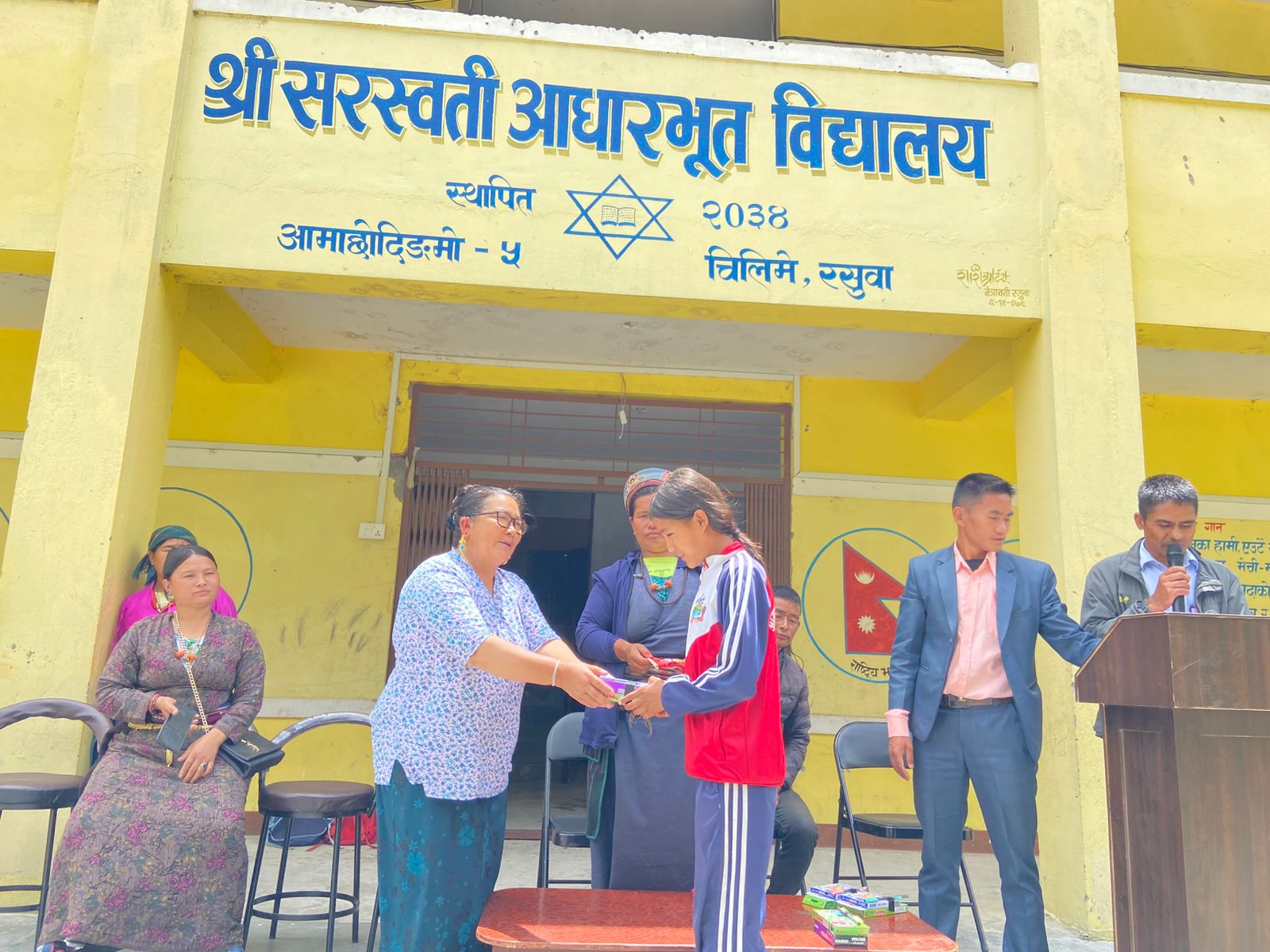 नेपालको हिमाली जिल्ला बागमती प्रदेशमा रसुवा जिल्ला रहेको छ । यस जिल्लाको उत्तर पश्चिम क्षेत्रमा अवस्थित आमाछोदिङमो गाउँपालिकाको वडा नं. ५, चिलिमेमा यस श्री सरस्वती आधारभूत विद्यालय रहेको छ । यस विद्यालयको स्थापना साविक गा. वि. स. चिलिमेको मोक्तान गाउँ वडा नं. ३ मा वि. स. २०३४ सालमा भएको हो । संस्थापक अध्यक्ष श्री नुर्वु साङबो थोक्रा ज्यू ले आफ्नै घरको आँगनमा गरिएको थियो । पछि आफ्नै छोरा फुर्पु सिङगी थोक्रा हुदै सानुकामी घिसिङ, दावा छेदेन थोक्रा, पासाङ तामाङ हुदै वर्तमान अध्यक्ष श्री छिरिङ ङेरुप घलेको अध्यक्षतामा सञ्चालित रहिआएको छ ।